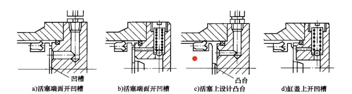 3)有緩沖裝置的液壓缸反向起動(dòng)時(shí),由于單向閥孔口太小,使進(jìn)入緩沖腔油量進(jìn)入太小,甚至出現(xiàn)真空,因此在緩沖柱塞離開(kāi)端蓋的瞬間,會(huì)引起活塞一時(shí)停止或后退現(xiàn)象。